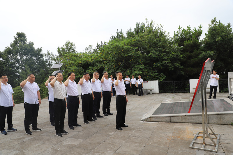 蘇家埠戰(zhàn)役是徐向前元帥于1932年3月22日至5月8日在蘇家埠地區(qū)指揮紅四方面軍與國民黨軍進(jìn)行的一次圍點(diǎn)打援戰(zhàn)役,是鄂豫皖蘇區(qū)史無前例的大勝仗。同志們來到徐向前元帥雕像前,久久佇立,深深敬仰。隨后同志們拾階而上,緩步走向革命烈士紀(jì)念碑前敬獻(xiàn)鮮花,并依次繞行瞻仰烈士紀(jì)念碑,表達(dá)了對革命烈士的敬仰與緬懷之情。在紀(jì)念碑前,黨員同志們整隊肅立,面向鮮紅的黨旗,高舉右手,在黨委書記項炳泉領(lǐng)誓下,莊嚴(yán)重溫入黨誓詞:“我志愿加入中國共產(chǎn)黨,擁護(hù)黨的綱領(lǐng),遵守黨的章程......”,錚錚誓言,鏗鏘有力,宣誓的聲音在紀(jì)念園上空久久回蕩。緊接著,在講解員的介紹下,同志們集體參觀了蘇家埠戰(zhàn)役紀(jì)念館。通過一幅幅老照片、一件件舊事物、一個個鮮活的歷史場景,輔以簡潔的文字,同志們詳細(xì)了解了蘇家埠戰(zhàn)役這一紅軍歷史上經(jīng)典戰(zhàn)役的前后過程,親身感受了徐向前元帥高超的軍事指揮藝術(shù)和紅軍戰(zhàn)士不畏強(qiáng)敵、一往無前的革命精神。