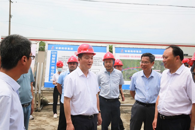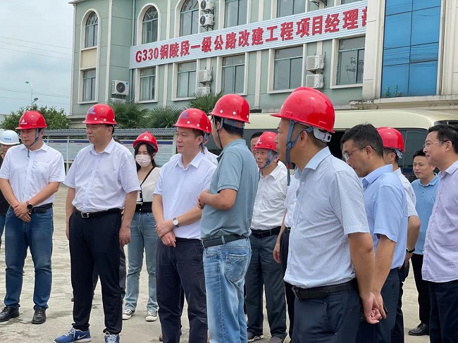 7月8日上午,銅陵市委副書記、市長孔濤赴安徽路橋集團(tuán)G330銅陵段一級公路改建工程項(xiàng)目進(jìn)行調(diào)研,銅陵市交通運(yùn)輸局、發(fā)展改革委、自然資源和規(guī)劃局、住房城鄉(xiāng)建設(shè)局、交投集團(tuán)等有關(guān)負(fù)責(zé)人,公司總工程師王家林等參加調(diào)研。