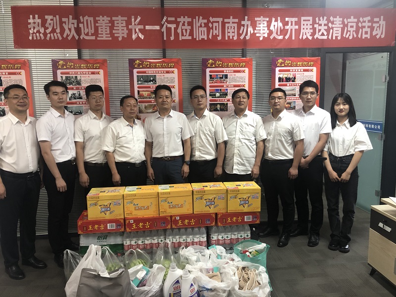 7月17日上午,安建建材黨委書記、董事長(zhǎng)張鍵一行赴河南辦事處調(diào)研并開展送清涼活動(dòng),公司黨委委員、副總經(jīng)理廖紹鋒,黨委委員、副總經(jīng)理、物資采購事業(yè)部總經(jīng)理、營銷分公司總經(jīng)理李鑫及相關(guān)部門負(fù)責(zé)同志參加調(diào)研。