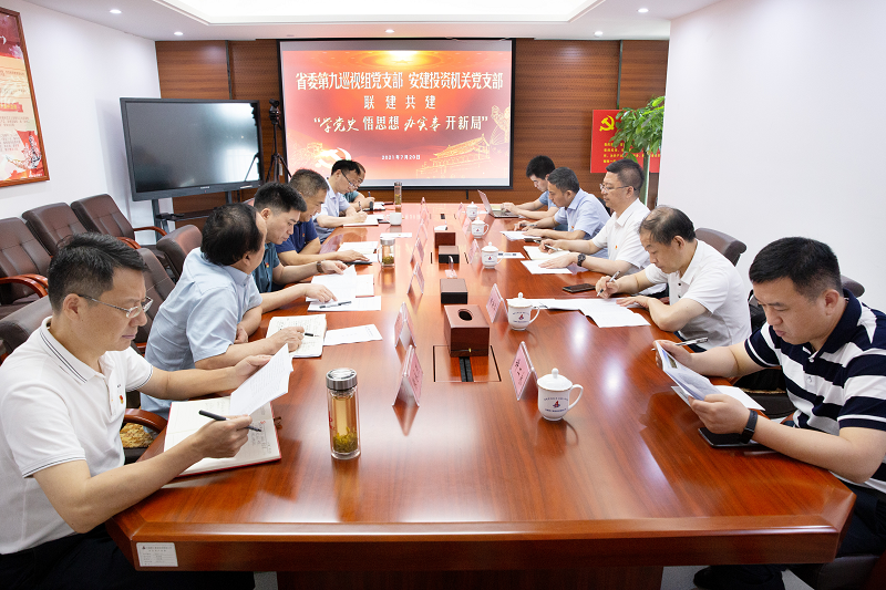 7月20日,省委第九巡視組副組長牛金志一行蒞臨安建投資公司指導(dǎo),帶領(lǐng)省委第九巡視組黨支部與安建投資機(jī)關(guān)黨支部開展聯(lián)建共建活動并參加座談會。