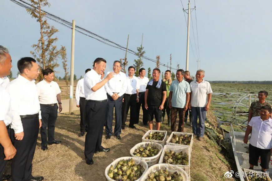 “這一直是我牽掛的事。”18日下午,正在安徽考察調(diào)研的習(xí)近平總書(shū)記來(lái)到阜陽(yáng)市阜南縣蒙洼蓄洪區(qū)利民村西田坡莊臺(tái),頂著炎炎烈日,走進(jìn)田間地頭,深入莊臺(tái)農(nóng)戶,看望慰問(wèn)受災(zāi)群眾。鄉(xiāng)親們告訴總書(shū)記:“蓄洪期間,大家住在莊臺(tái),電沒(méi)斷、水照供、生活用品有人送?,F(xiàn)在水退了,都在搶種補(bǔ)種,水退到哪里,就補(bǔ)種到哪里。請(qǐng)總書(shū)記放心!”習(xí)近平高興地說(shuō):“我一直牽掛災(zāi)區(qū)的群眾,看到鄉(xiāng)親們生產(chǎn)生活都有著落、有希望,我的心就踏實(shí)?!?/SPAN>