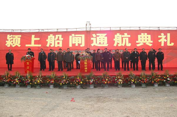 潁上船閘通航典禮由省交通廳副廳長羅寧主持。省長助理花建慧代表省政府向潁上船閘建成通航表示祝賀,她指出:潁上船閘建設(shè)是我省沙潁河復航的第一個工程,是全省“861計劃”重要項目,建設(shè)潁上船閘,開辟阜陽航運的第二條入淮通道,是沙潁河航運全線復航的迫切需要,對加快淮河航道網(wǎng)建設(shè)、完善區(qū)域綜合運輸體系、改善流域水環(huán)境、推進國家高等級航道網(wǎng)建設(shè)、促進豫皖合作,特別是皖北地區(qū)發(fā)展都是具有十分重要意義。省港航建設(shè)投資集團公司總經(jīng)理李家俊隨后詳細介紹了潁上船閘建設(shè)情況,他說:潁上船閘的勝利通航是在省委省政府的悉心關(guān)懷下、阜陽市委市政府和阜陽人民的大力支持下,經(jīng)過所有參建單位的近三年辛勤工作,今日終于勝利通航。潁上船閘建成通航既實現(xiàn)了沿淮群眾多年的夙愿,也為全面回復沙潁河航運開了一個好頭,作為安徽省“兩干三支”水運主航道之一的沙潁河全線復航已是指日可待,將對地方經(jīng)濟的發(fā)展起到有力的促進作用。最后,副省長黃海嵩為穎上船閘通航啟動通航按鈕!