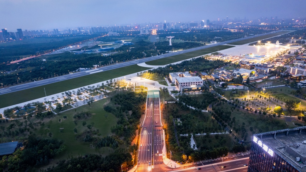 “一隧穿城融綠韻,城市更新賦動(dòng)能。”濱湖科學(xué)城花園大道(徽州大道-包河大道)建設(shè)工程位于合肥濱湖科學(xué)城,西起徽州大道,東至包河大道,全長(zhǎng)約3km,其中2.26km采用下穿隧道方式穿越錦繡湖、公園生態(tài)綠地及機(jī)場(chǎng)跑道。項(xiàng)目在設(shè)計(jì)復(fù)雜程度、施工工藝難度上均刷新全省“紀(jì)錄”,創(chuàng)下全省市政道路建設(shè)史上的多個(gè)“首次”,順利實(shí)現(xiàn)135m箱涵節(jié)段“無(wú)損”下穿機(jī)場(chǎng)跑道,讓“老”機(jī)場(chǎng)建“新”園博這一最大特色得到完美體現(xiàn)。