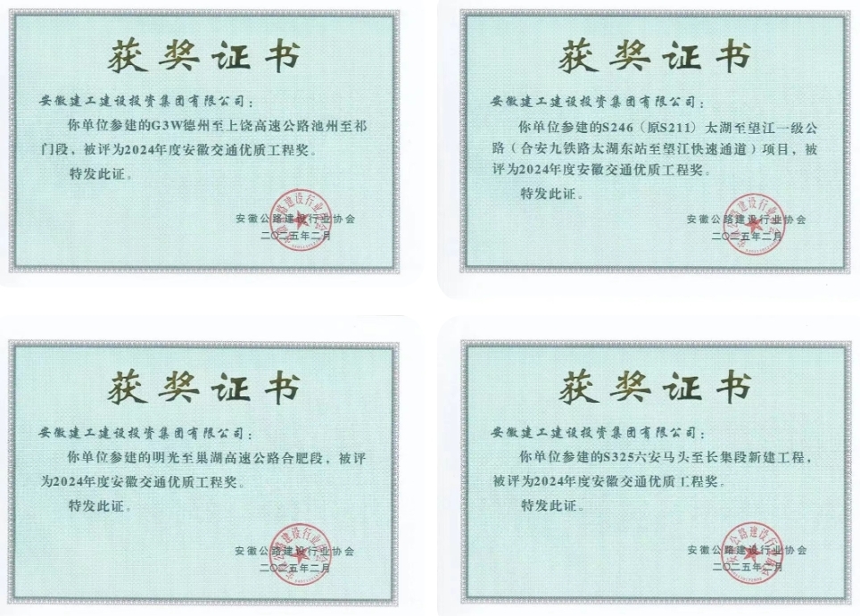 安徽交通優(yōu)質(zhì)工程獎(jiǎng)由省交通運(yùn)輸廳主辦,評(píng)選過(guò)程嚴(yán)格,旨在表彰在公路、水運(yùn)等交通基礎(chǔ)設(shè)施建設(shè)領(lǐng)域內(nèi)設(shè)計(jì)優(yōu)秀、管理科學(xué)、技術(shù)先進(jìn)、質(zhì)量?jī)?yōu)良、運(yùn)行安全且效益顯著的工程項(xiàng)目,是安徽省交通建設(shè)行業(yè)重要質(zhì)量獎(jiǎng)項(xiàng)之一。建工建投公司此次獲獎(jiǎng)項(xiàng)目包括G3W德州至上饒高速公路池州至祁門段、S246(原S211)太湖至望江一級(jí)公路(合安九鐵路太湖東站至望江快速通道)項(xiàng)目、明光至巢湖高速公路合肥段、S325六安馬頭至長(zhǎng)集段新建工程,充分展現(xiàn)了企業(yè)在交通建設(shè)領(lǐng)域的技術(shù)實(shí)力和質(zhì)量管理水平。