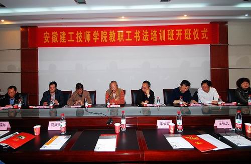 10月23日上午,安徽建工技師學(xué)院隆重舉行書法培訓(xùn)班開班儀式。省國(guó)資委副主任、常務(wù)副書記吳經(jīng)華,省書法家協(xié)會(huì)名譽(yù)主席張良勛,省書法名家余國(guó)松、傅愛國(guó)、張兆玉、史培剛,劉重秋、潘偉城,安徽建工集團(tuán)公司領(lǐng)導(dǎo)李長(zhǎng)斌、王禮義等出席了開班儀式,安徽建工技師學(xué)院領(lǐng)導(dǎo)、學(xué)院中層管理人員及書法愛好者參加了開班儀式。