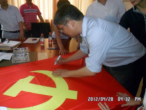 最后,與會(huì)人員按照爭(zhēng)創(chuàng)黨員先鋒號(hào)活動(dòng)方案的要求,開(kāi)展“我是黨員、我亮身份”的簽字儀式。