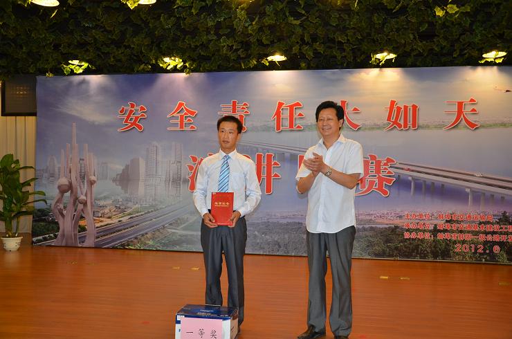 6月19日,安徽水利蚌埠公司組織員工參加蚌埠市交通運(yùn)輸局組織的“安全責(zé)任大如天” 主題演講比賽榮獲第一名。省質(zhì)監(jiān)局及蚌埠市多家單位領(lǐng)導(dǎo)、電視臺(tái)記者等近160人,現(xiàn)場聆聽了孫文明的精彩演講。
