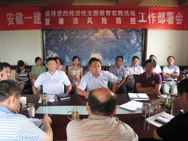 會(huì)上,鄭軍書記傳達(dá)了集團(tuán)公司黨委保持黨的純潔性主題教育實(shí)踐活動(dòng)暨廉潔風(fēng)險(xiǎn)防控工作推進(jìn)部署會(huì)精神,宣讀了《安徽一建公司“保持黨的純潔性、迎接黨的十八大”主題教育實(shí)踐活動(dòng)實(shí)施方案》和《安徽一建廉潔風(fēng)險(xiǎn)防控工作實(shí)施方案》,并結(jié)合工作實(shí)際對(duì)主題教育實(shí)踐活動(dòng)和廉潔風(fēng)險(xiǎn)防控工作的指導(dǎo)思想、總體目標(biāo)、主要原則、方法步驟、組織實(shí)施等做了全面部署。并要求全體黨員干部要充分認(rèn)識(shí)保持黨的純潔性的重要性和緊迫性,堅(jiān)持學(xué)習(xí)為先、正面教育為主、突出領(lǐng)導(dǎo)帶頭、貫徹群眾路線、注重實(shí)踐特色的原則,著力解決思想建設(shè)、作風(fēng)建設(shè)、組織建設(shè)、制度建設(shè)等方面尚存的問題,不斷增強(qiáng)黨員干部的宗旨意識(shí)、政治意識(shí)、危機(jī)意識(shí)、責(zé)任意識(shí)、廉潔意識(shí)。
