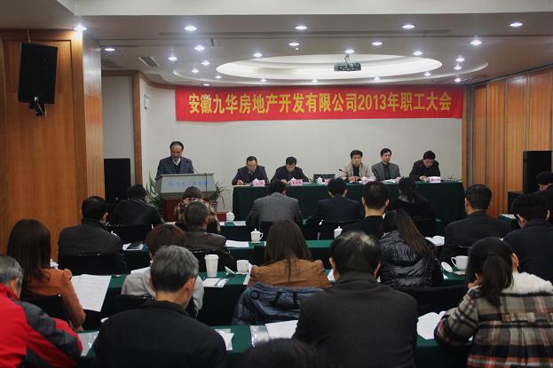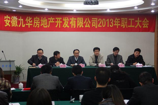 3月29日,安徽九華房地產(chǎn)開發(fā)有限公司召開2013年職工大會,建工集團副總經(jīng)理霍向東,工會副主席吳曉伍出席會議。會議由九華公司副總經(jīng)理龍華主持。