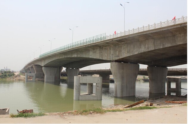 205國道馬鞍山段全長19.075公里,雙向6車道,設(shè)計時速80公里,設(shè)置輔道、人行道。本工程有采石河橋、襄城河橋、姑溪河大橋、大唐電力上跨橋四座橋梁,其中姑溪河大橋于4月13日合龍。