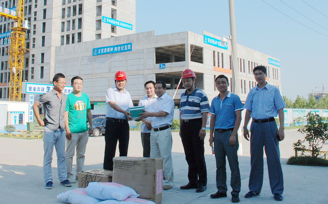 炎炎夏日,高溫酷暑,7月23日起,公司總經(jīng)理陳傳文、黨委書(shū)記徐文聯(lián)、黨委副書(shū)記、工會(huì)主席江萍等公司領(lǐng)導(dǎo)先后來(lái)到安徽省城鄉(xiāng)規(guī)劃建設(shè)大廈、明光市花園路棚改小區(qū)等工程項(xiàng)目,親切慰問(wèn)了一線施工人員,并為他們送去醫(yī)用急救箱、防暑、解暑等生活用品。至此,工程公司2014夏季送清涼活動(dòng)正式拉開(kāi)帷幕。