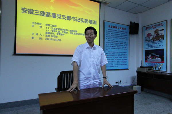 7月17號(hào)下午,安徽三建公司黨委工作部舉辦了一期黨支部書記實(shí)務(wù)培訓(xùn)班,全公司37個(gè)基層黨支部的負(fù)責(zé)人悉數(shù)到會(huì)參加培訓(xùn)。