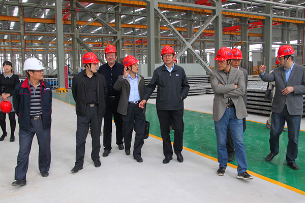 張長淮一行實地參觀了內墻板、外墻板、疊合板三條工業(yè)化建筑自動生產(chǎn)線,詳細聽取企業(yè)現(xiàn)狀和建筑工業(yè)發(fā)展情況、產(chǎn)品性能優(yōu)勢等方面的匯報。他對公司作為安徽本土企業(yè)大力推動建筑業(yè)轉型升級給予高度評價。他指出,合肥市致力于將建筑產(chǎn)業(yè)化打造成為又一支柱產(chǎn)業(yè),希望公司要緊緊抓住當前難得的機遇,充分發(fā)揮總承包的優(yōu)勢,在搞好部品部件生產(chǎn)的同時,特別要注重深化設計,完善現(xiàn)場吊裝裝配工藝流程,力爭做強做大。同時他要求隨行部門要切實關心關注本土企業(yè),加強過程指導,搞好服務保障,盡量讓企業(yè)少走彎路。