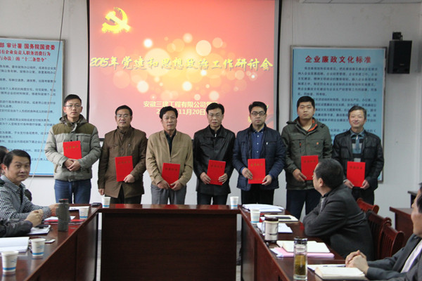 安徽三建公司黨委書記徐曉光結(jié)合當(dāng)前及今后一段時(shí)期黨建和思想政治工作做重要講話。他指出,安徽三建公司思想政治工作取得了許多好的經(jīng)驗(yàn),主要表現(xiàn)為在:一是思想政治工作緊緊圍繞生產(chǎn)經(jīng)營中心,服從服務(wù)于企業(yè)改革發(fā)展穩(wěn)定大局;二是思想政治工作堅(jiān)持以人為本,服務(wù)職工各方需求;三是思想政治工作堅(jiān)持與時(shí)俱進(jìn),實(shí)事求是,不斷改進(jìn)方式方法;四是思想政治工作堅(jiān)持貼近實(shí)際、貼近施工現(xiàn)場(項(xiàng)目)、貼近職工、貼近生活,不斷增強(qiáng)工作的感召力和滲透力;五是思想政治工作堅(jiān)持典型引路,及時(shí)宣傳推廣好的經(jīng)驗(yàn)。他強(qiáng)調(diào),要認(rèn)真總結(jié)經(jīng)驗(yàn),發(fā)揚(yáng)成績,進(jìn)一步做好今后的思想政治工作:一要與時(shí)俱進(jìn),進(jìn)一步適應(yīng)時(shí)代的要求;二要以人為本,進(jìn)一步增強(qiáng)工作的吸引力和說服力;三要突出重點(diǎn),把難點(diǎn)熱點(diǎn)問題作為主攻方向;四要加強(qiáng)自身建設(shè),增強(qiáng)工作的推動(dòng)力和活力。他最后強(qiáng)調(diào),兩級(jí)黨群組織及熱心思想政治工作的同志,要認(rèn)真總結(jié)經(jīng)驗(yàn),發(fā)揚(yáng)成績;政工干部肩負(fù)責(zé)任,是思想政治工作的主要力量,要以更加積極務(wù)實(shí)的態(tài)度努力工作、服務(wù)企業(yè),為促進(jìn)企業(yè)穩(wěn)步發(fā)展做出更大成績。
