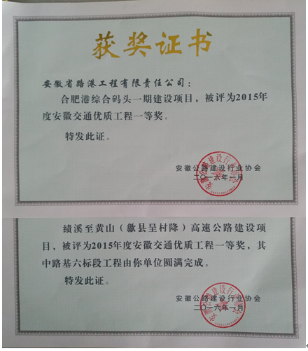 近日傳來好消息,由安徽路港公司承建的績溪至黃山(歙縣呈村降)高速公路工程、合肥港綜合碼頭一期工程榮獲2015年度安徽省交通優(yōu)質(zhì)工程一等獎。