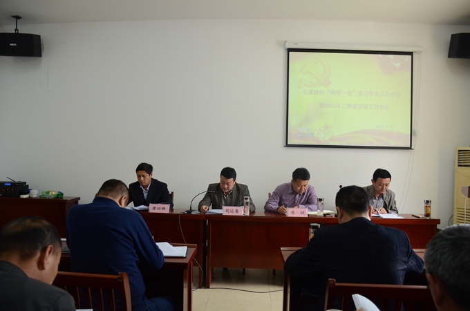 5月10日,安建建材“兩學一做”學習教育工作會暨2016年二季度黨群工作例會在機關會議室召開。公司領導、機關黨員及各部門副職以上人員、黨群部門人員,各單位領導班子成員、工會負責人、紀檢員參加“兩學一做”學習教育工作會議,會議由公司黨委副書記胡運春主持。