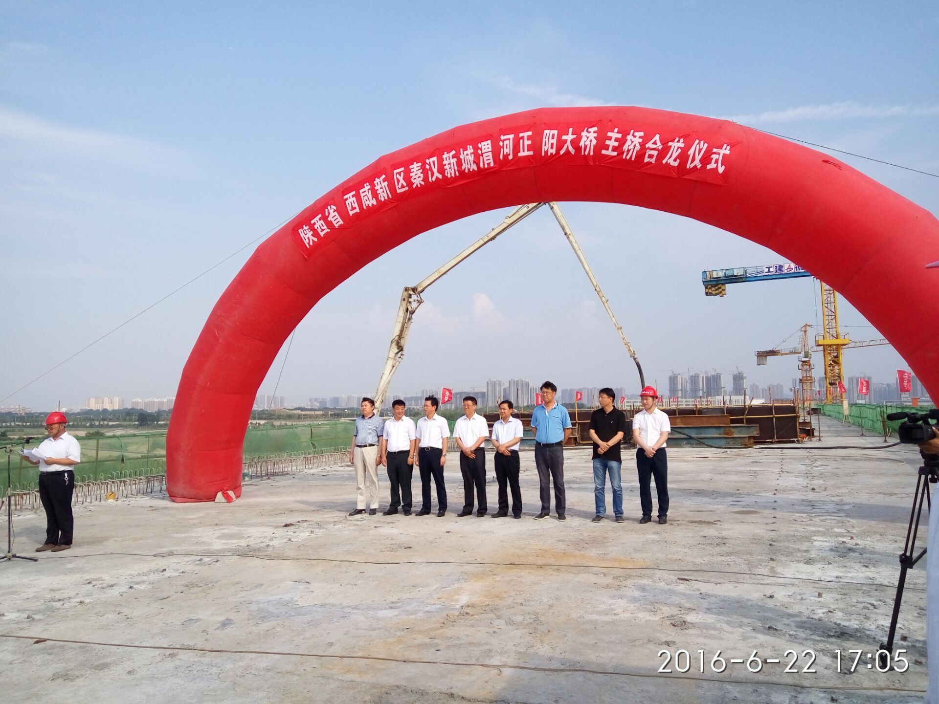 2016年6月22日下午,安徽水利西北公司承建的西咸新區(qū)秦漢新城渭河正陽(yáng)大橋舉行主橋合龍儀式。西咸新區(qū)管委會(huì)副主任兼秦漢新城管委會(huì)主任楊占文、咸陽(yáng)市渭城區(qū)區(qū)委書記楊美樂、區(qū)長(zhǎng)余天西、常務(wù)副區(qū)長(zhǎng)李曉曦、秦漢新城管委會(huì)副主任許壽琨、楊占成、秦漢新城基建公司經(jīng)理趙高飛、安徽水利西北公司經(jīng)理傅宏林等出席了儀式,參建各單位、各部門近百人共同見證了這一激動(dòng)人心的時(shí)刻。