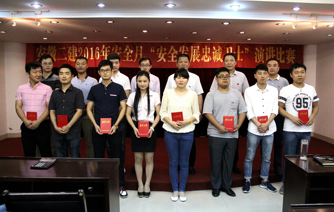 6月28日下午,第十五個(gè)安全活動(dòng)月中,安徽二建公司工會(huì)與安全管理部聯(lián)合組織開(kāi)展“安全發(fā)展忠誠(chéng)衛(wèi)士”演講比賽活動(dòng),來(lái)自公司機(jī)關(guān)及基層單位12名選手參加比賽,他們通過(guò)身邊安全生產(chǎn)管理細(xì)微小事、安全事故發(fā)生案例等一個(gè)個(gè)生動(dòng)的演講主題,喚醒大家牢記安全為天意識(shí),珍愛(ài)生命,強(qiáng)化安全管理工作的理念。最后經(jīng)過(guò)評(píng)委評(píng)分,公司機(jī)關(guān)張琪獲得一等獎(jiǎng),海外發(fā)展公司王南岳、后勤綜合服務(wù)部葉錫峰獲二等獎(jiǎng),三分公司劉振中、一分公司徐欣琪、一分公司李曉崗獲三等獎(jiǎng),邵進(jìn)等6人獲優(yōu)秀獎(jiǎng)。