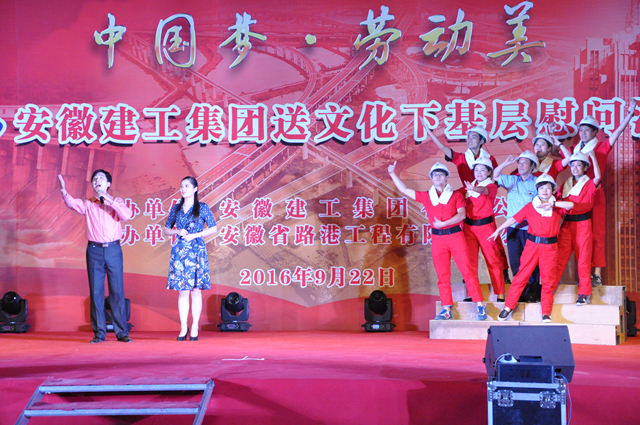 9月22日晚,安徽建工集團(tuán)送文化下基層慰問巡演在安徽路港公司沙潁河航道整治工程項(xiàng)目部舉行,將集團(tuán)公司工會(huì)對(duì)一線干部職工的親切慰問和深情關(guān)懷,用文藝演出的方式送到職工身邊,安徽路港沙潁河項(xiàng)目部、安徽路橋太和三橋項(xiàng)目部和安徽二建太和房建和市政PPP指揮部的職工共200多人觀看了演出。
